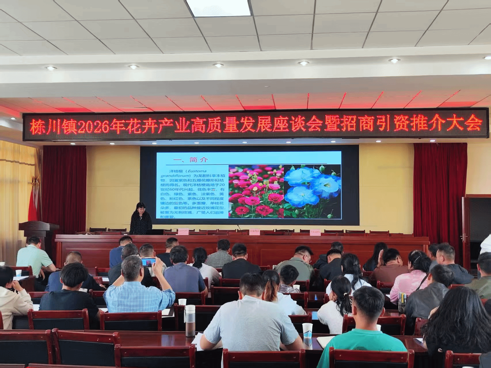 为深入贯彻县委、县政府打造“鲜花之城”战略部署,破解栋川花卉产业发展瓶颈,拓展合作空间,2026年4月9日,栋川镇隆重召开2026年花卉产业高质量发展座谈会暨招商引资推介大会。镇人大主席刘云彪主持会议,镇人民政府分管领导、云南省农业科学院花卉研究所专家、重点花卉企业负责人、各村(社区)书记、主任及相关工作人员、部分花卉种植主体及意向种植花卉的群众共计86人齐聚一堂,共商产业发展大计,共绘乡村振兴蓝图。