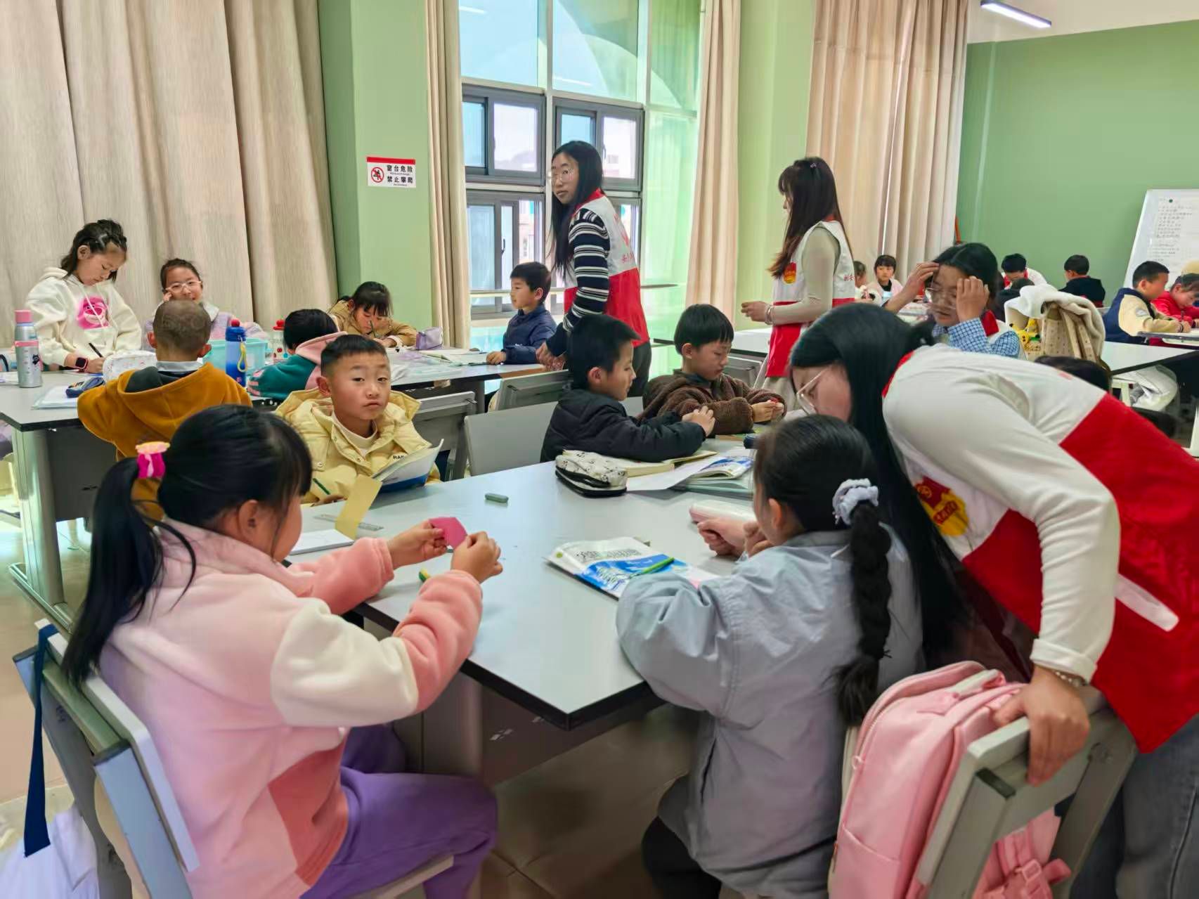 作为“书香姚安”建设的生动实践,县图书馆精心布置专属学习空间,并依托馆藏资源,配备少儿读物、科普图书与红色经典,由专业馆员引导阅读,帮助孩子养成良好的阅读习惯。同时,30名来自团县委的志愿者提供作业辅导、知识梳理等服务,融入了思想引领与安全教育内容。