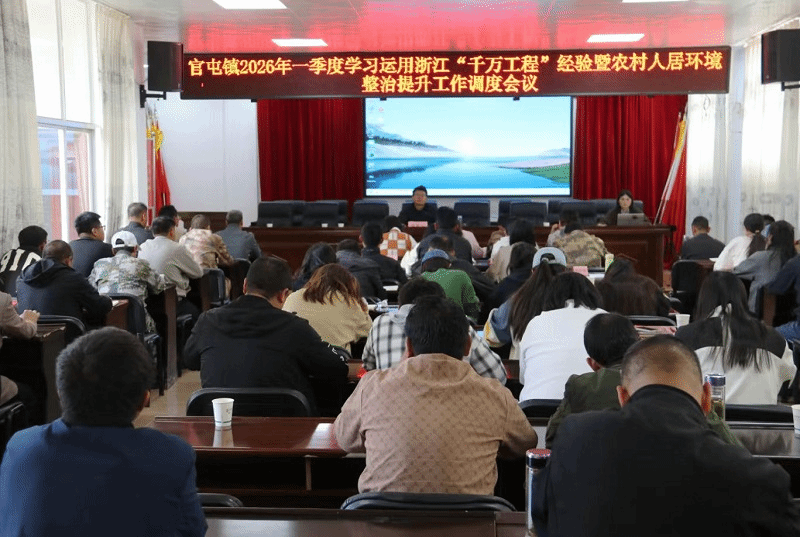 4月9日,官屯镇召开2026年第一季度学习运用浙江“千万工程”经验暨人居环境整治提升工作调度会议。镇党政班子成员、各村(社区)党总支书记、村委会主任及相关站所负责人参加会议。