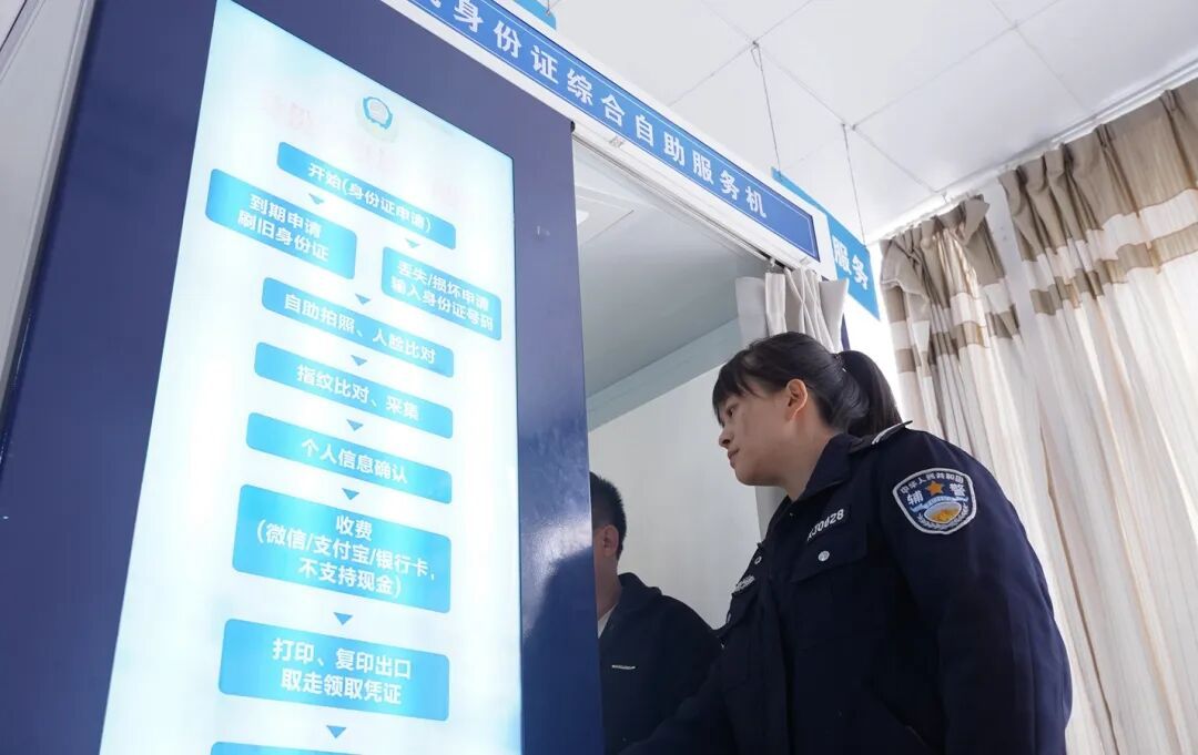 面对激增的办事需求,公安政务大厅全体民辅警提前到岗、全员值守,全力开启“满负荷”服务模式。为有效分流办事人群、提升整体办理效率,姚安公安全面推行“人工窗口+自助服务区”双线办理模式,政务大厅内的自助办证机等智能设备全天候开放、专人维护,群众办理身份证补换领等业务可一站式完成信息核验、拍照、申请等流程,操作便捷高效,大幅缩短办理时间。针对不熟悉智能设备操作的老年群体或特殊群众,民警全程提供“手把手”“上门办”等服务,耐心讲解操作步骤、陪同完成业务办理,确保每一位群众都能无障碍享受科技带来的便利。